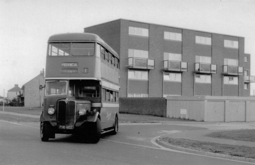 The most common types seen at this time, were AEC Regents and Guy Arabs, and I had my favourites even then , which strangely enough were all second-hand vehicles. I think part of their attraction was the fact that they rarely seemed to appear on this route, and also that they were different to the native vehicles. The vehicles concerned were 48 – JML 784 , 72 – HHA 84 and 16- ACN 167. Number 48 was a 1938 AEC Regent demonstrator with Weymann body, which seemed to have a totally different engine noise to all other Provincial Regents. 72 was a 1945 ex Midland Red Guy Arab II (No 2589), with Northern Counties body work. This was later rebuilt with a fully fronted Reading body, and a Deutz air cooled engine in 1964. My other favourite was number 16. This was a 1946 ex Northern General AEC Regent I (No 1167) with Northern Coach Builders body. It was withdrawn in 1962.